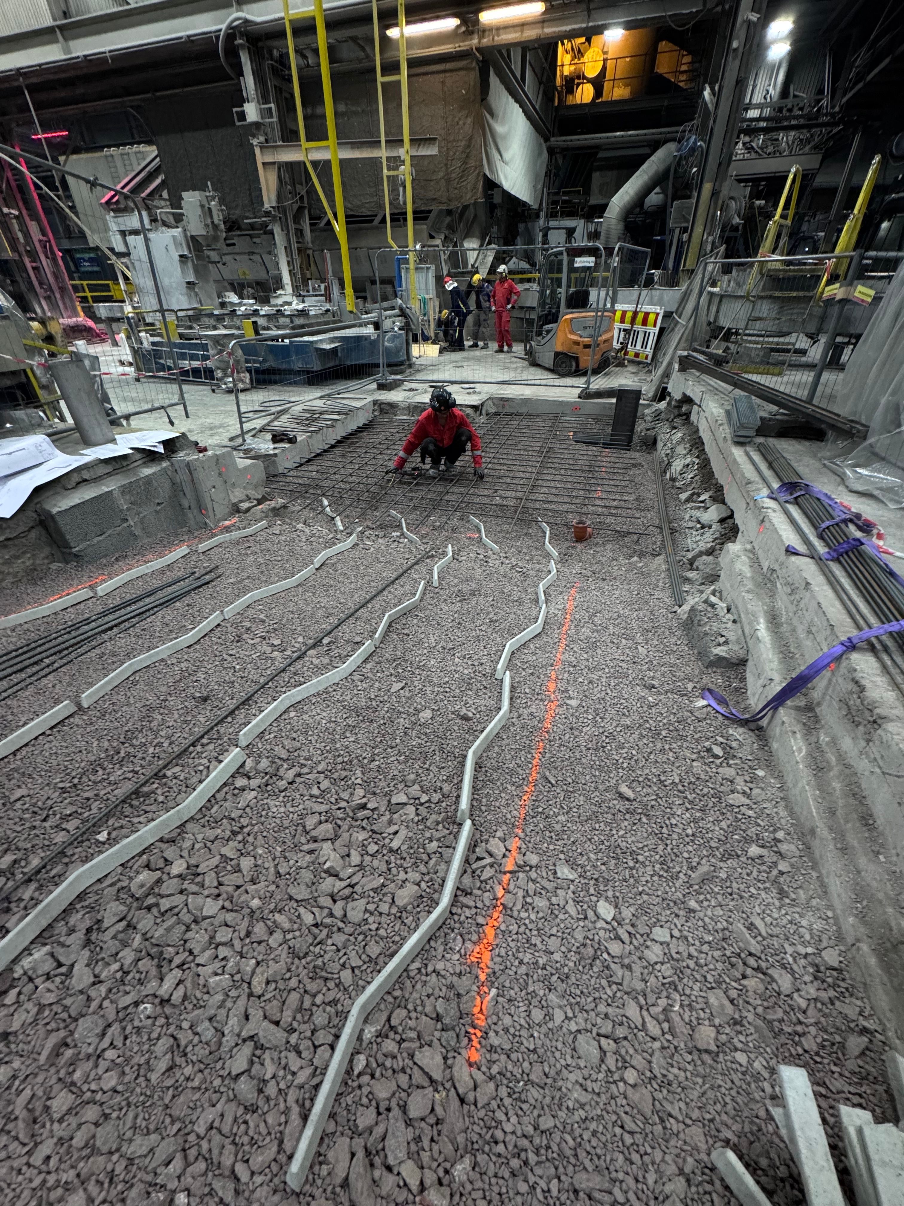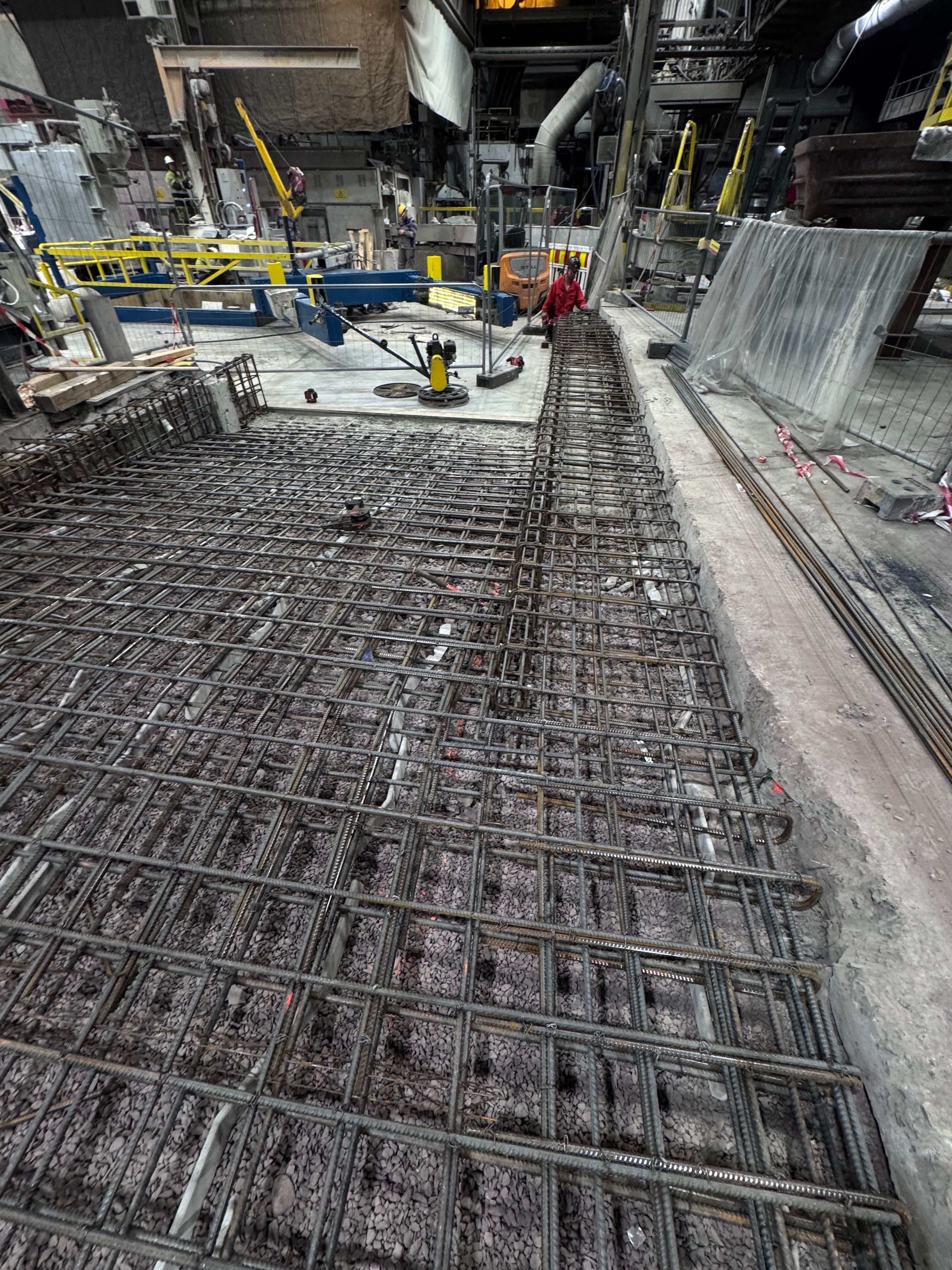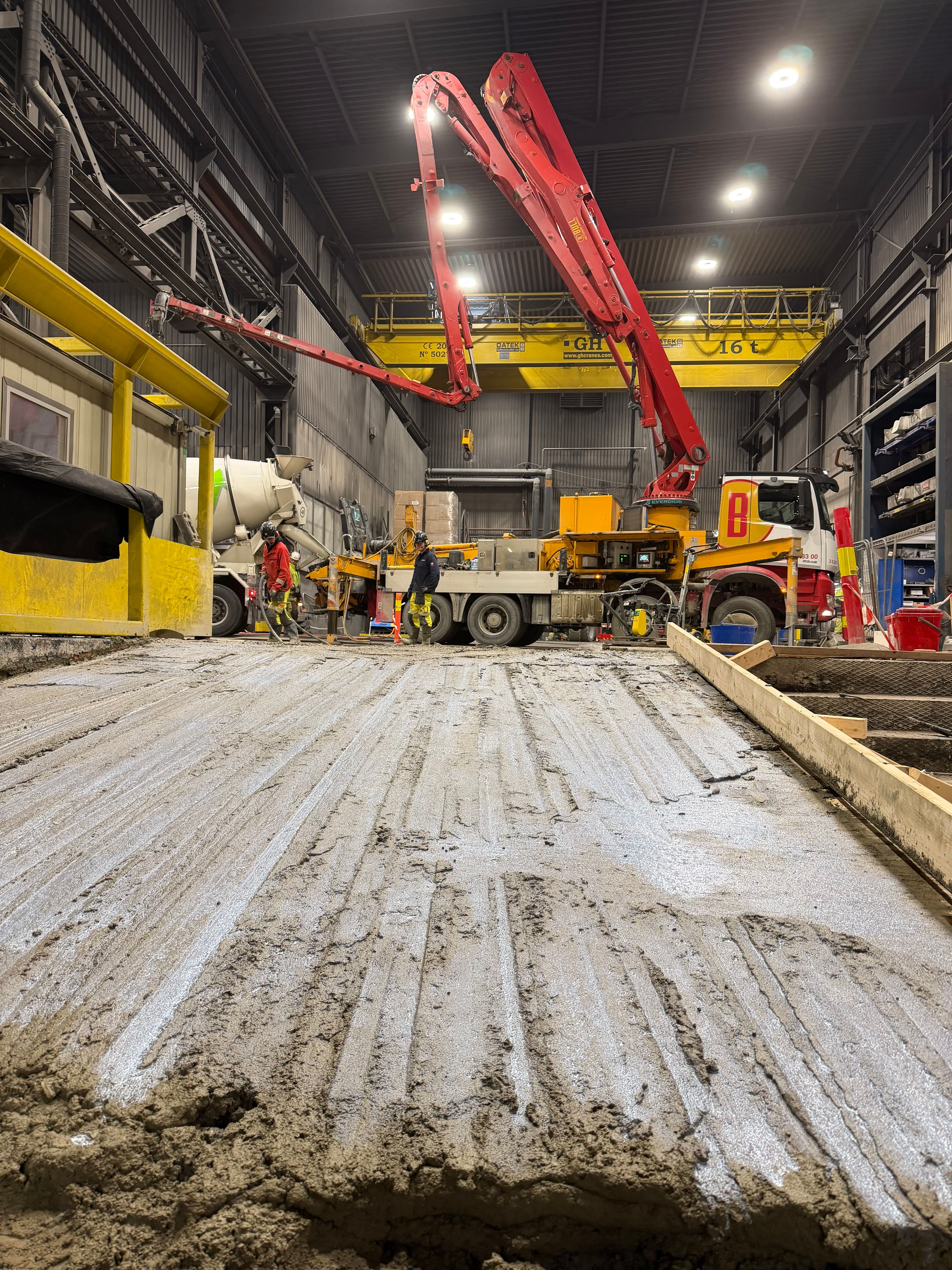 Omfattende betongstøping med 6000 kg armering og 42 m³ betong levert av Hokksund Betong. Prosjektet ble gjennomført med døgnkontinuerlig arbeid for å sikre fremdrift.