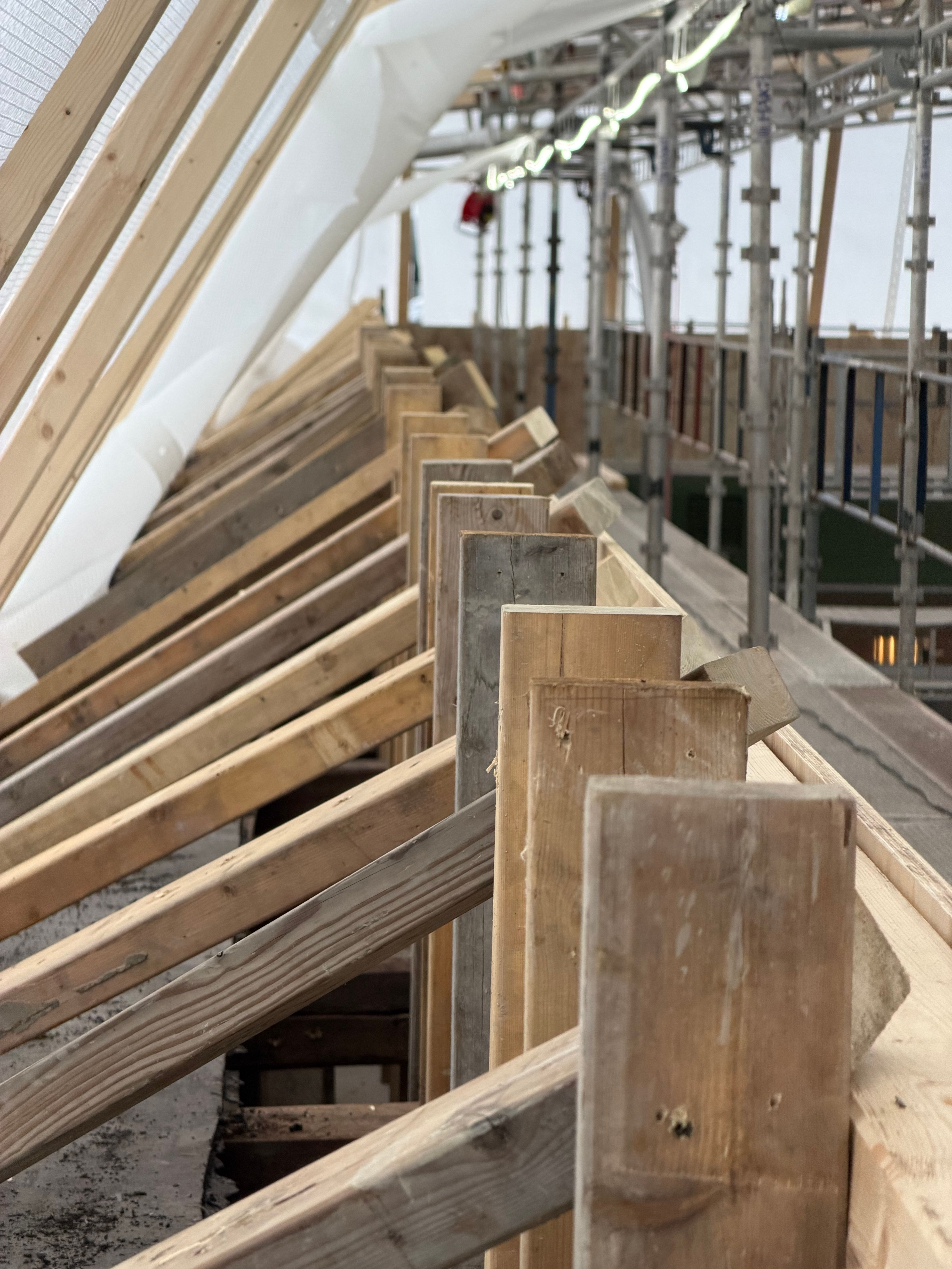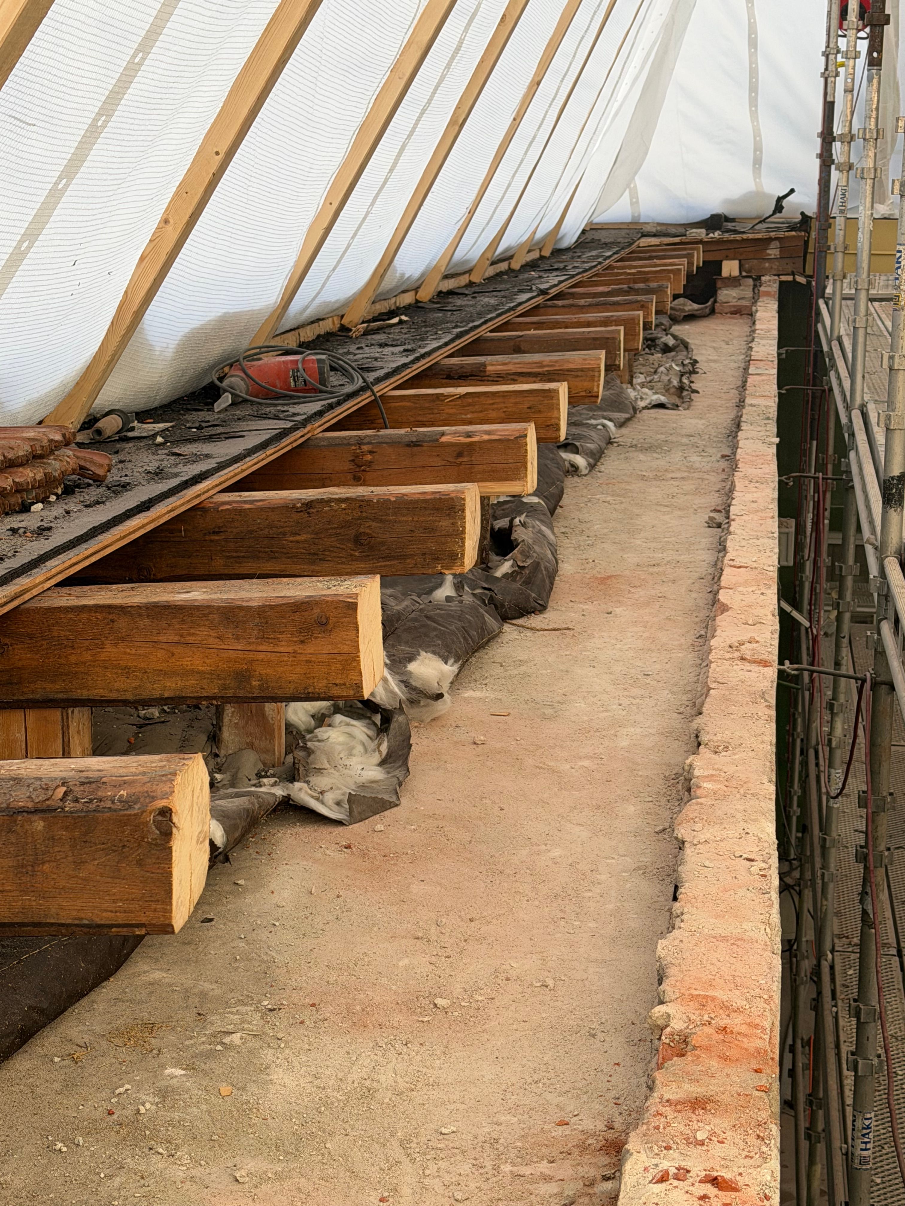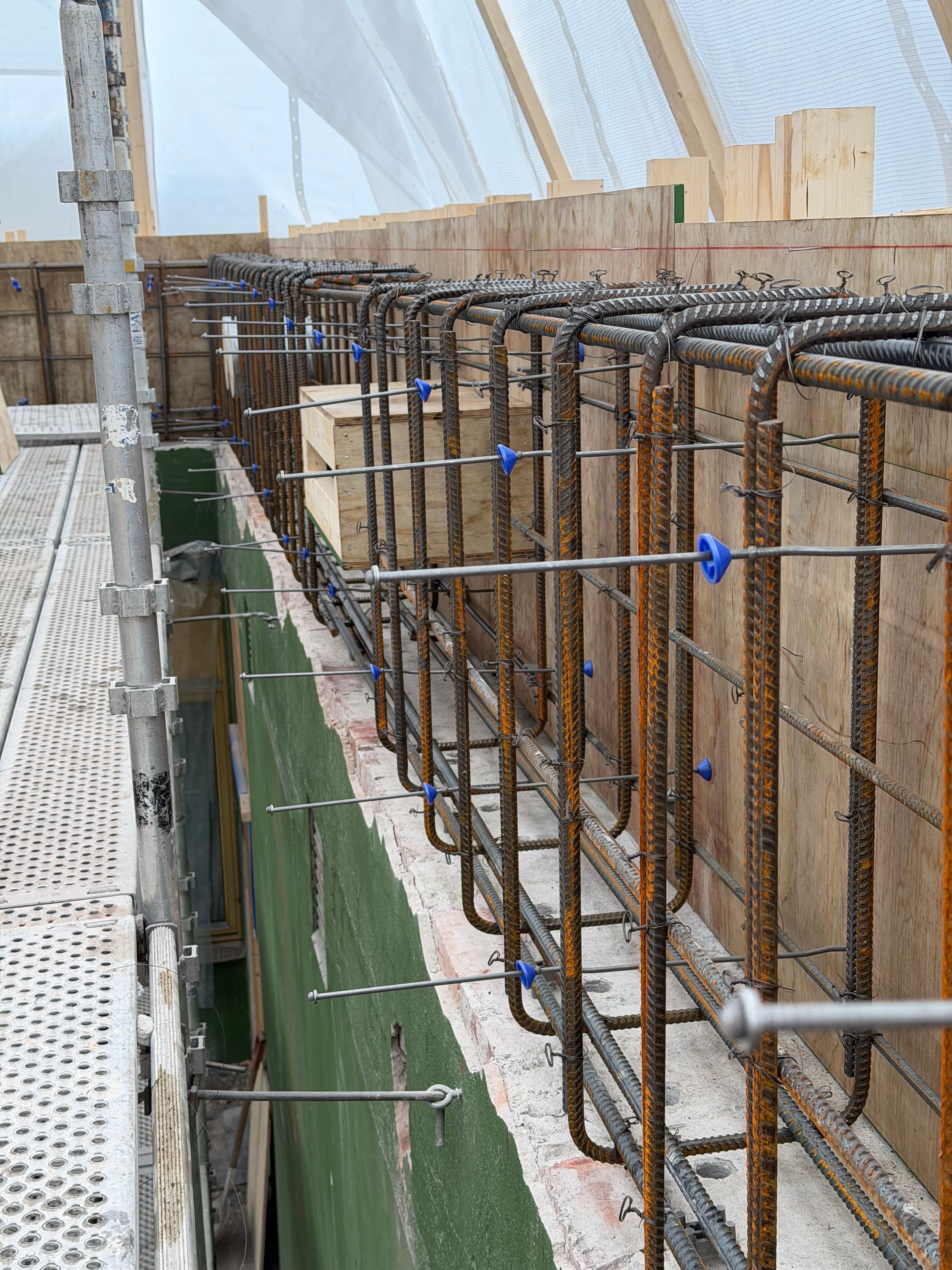 Det er utført ny ringmur i 3. etasje som fundament for stålkonstruksjon og glasstak. Arbeidet omfattet levering og støp av ca. 40 m³ betong, samt boring av 350 hull (Ø35 mm, dybde 600 mm) for gysing og forankring mot eksisterende vegger.